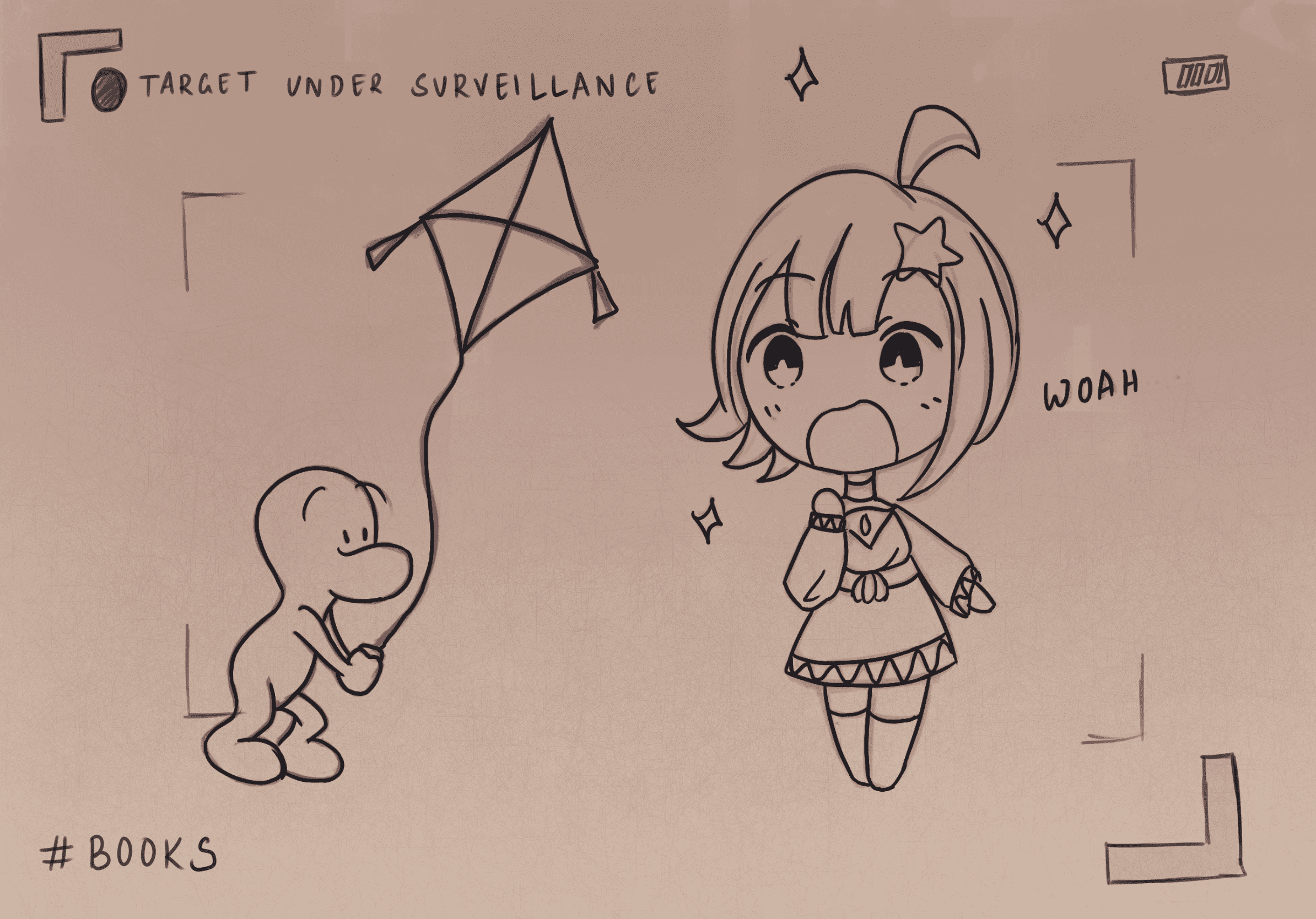 Here's a small illustration I made combining all the three books and my OC I made for fun.